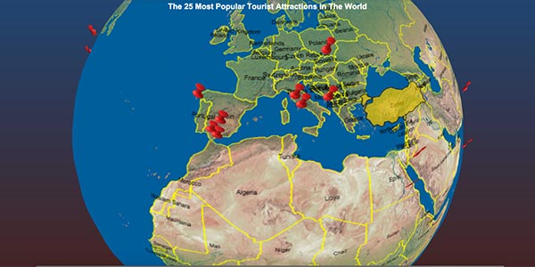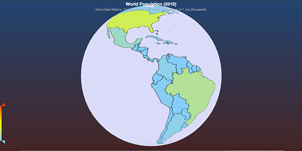 Examples Map 3D Basic Map3D Jupiter World Population World Population 2 World Population 3 Surface Wind Field Visualization World Flights The 25 Most Popular Tourist Attractions In The World Map 3D Mix Map3D Mix Map World GDP